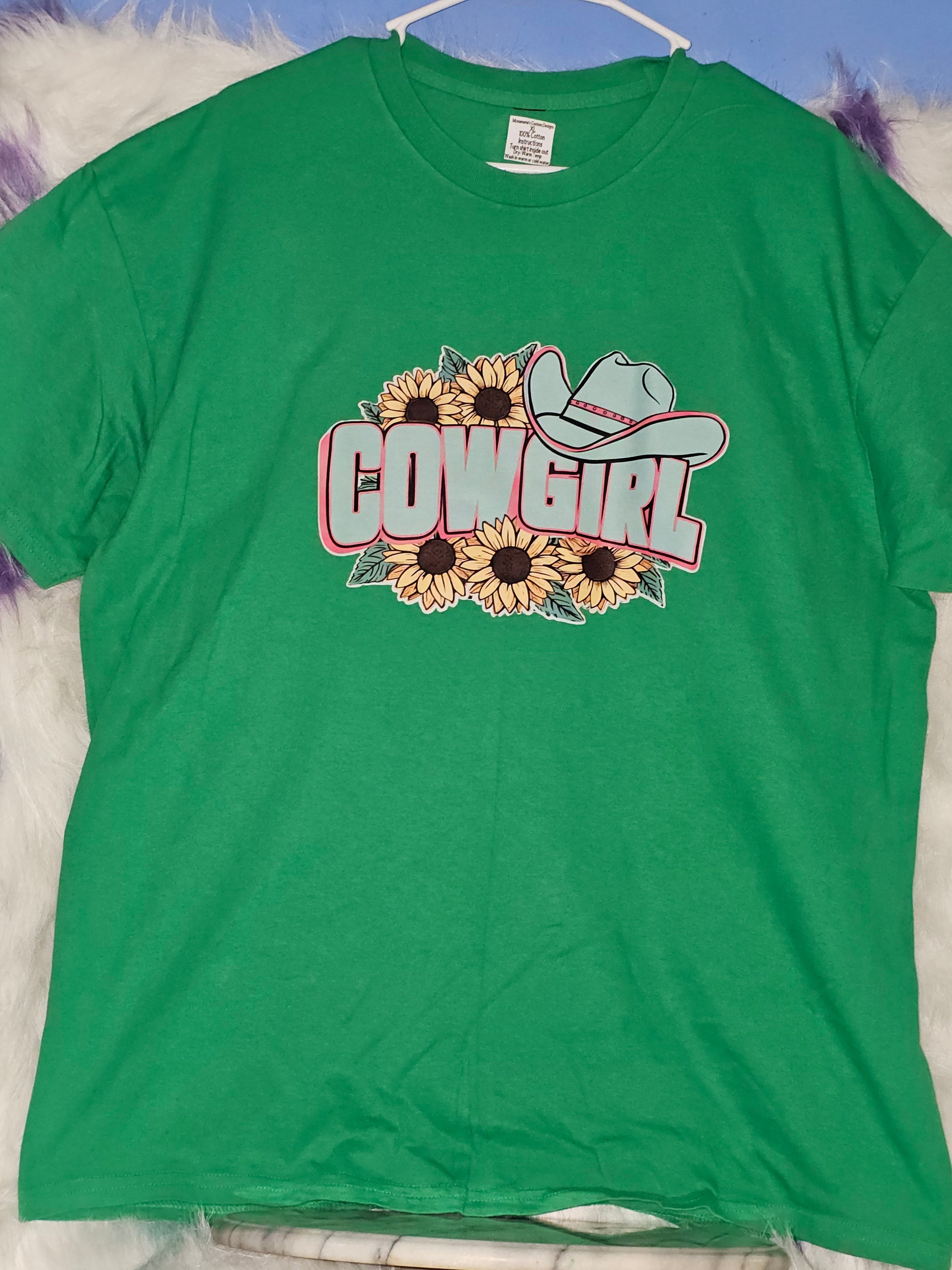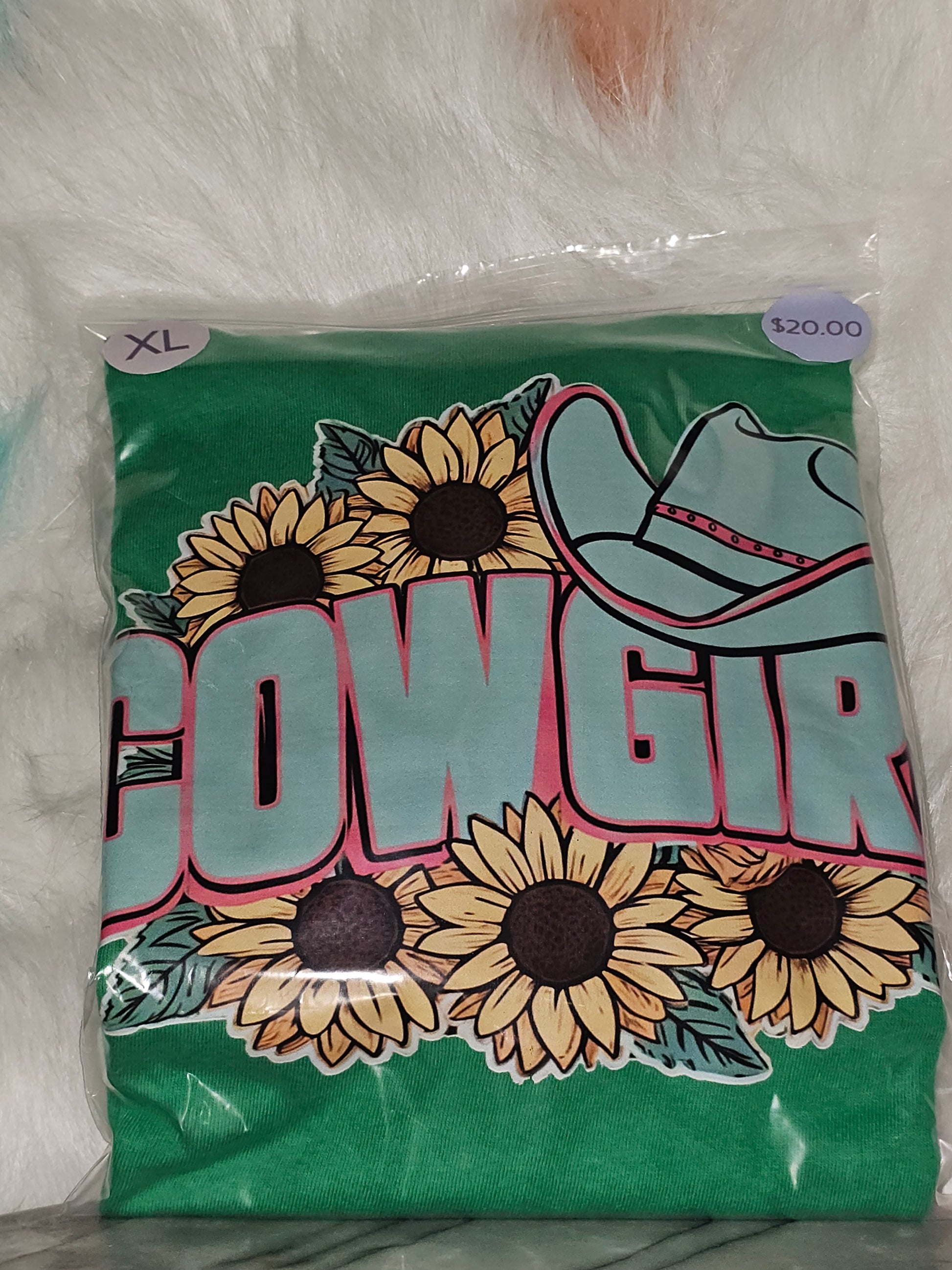 Discover the perfect fit with our Size XL 100% cotton green cowgirl Tshirt. Made from high quality materials, this shirt offers both comfort and style for any occasion. Experience the softness of cotton and show off your unique cowgirl spirit. Upgrade your wardrobe today!Size XL 100% cotton green cowgirl Tshirt. Washing instructions turn Shirt inside out and wash in cold or warm water and dry on low heat or air dry.DO NOT WASH IN HOT WATER. Your information is protected.