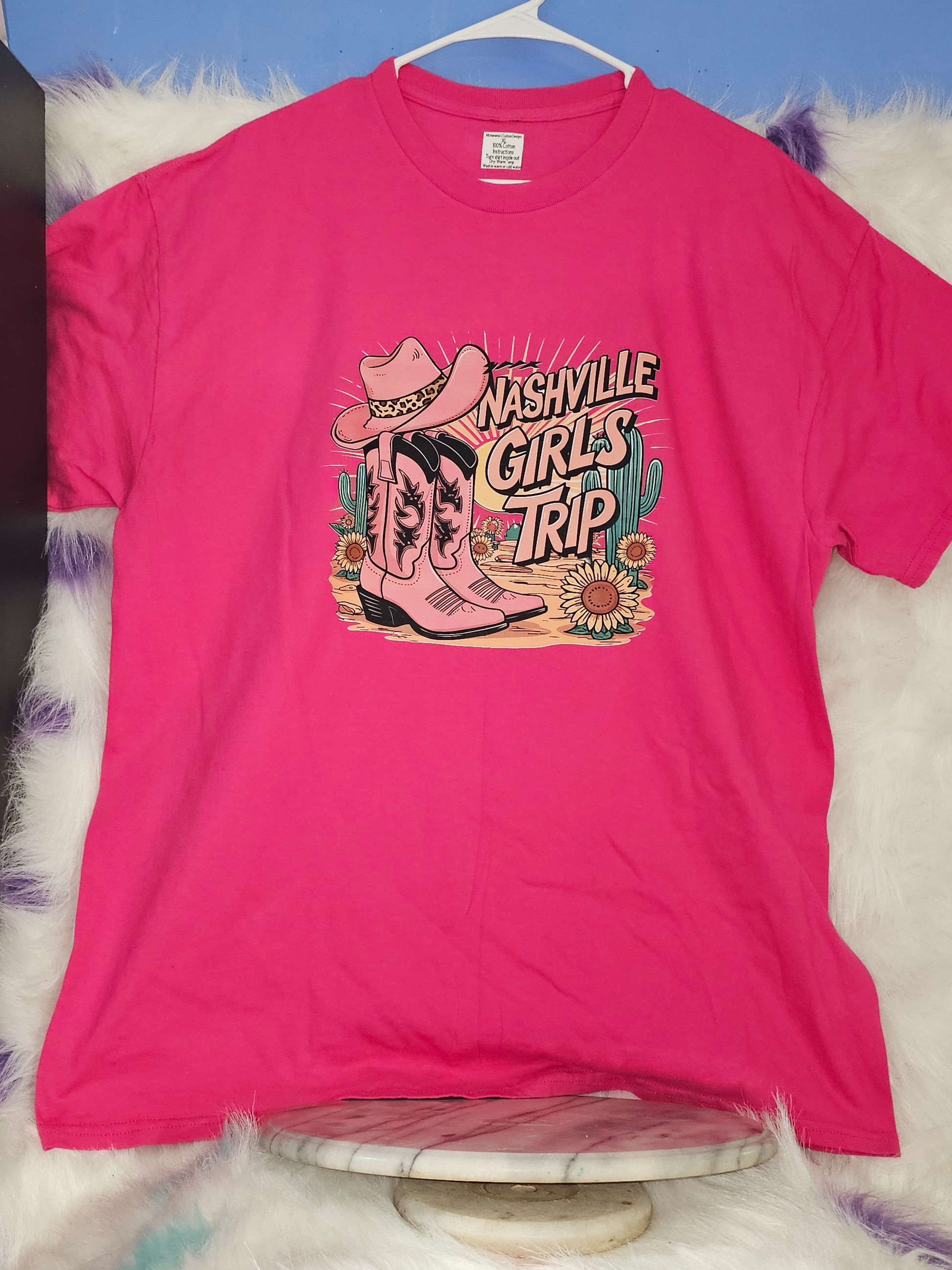 This Nashville girls trip Tshirt, made from 100% cotton in size XL, is perfect for exploring the city in comfort. Breathable and durable, it will keep you cool and stylish while you make memories with your friends. A must-have for any Nashville getaway.Size XL 100% cotton Nashville girls trip Tshirt. Washing instructions turn Shirt inside out and wash in cold or warm water and dry on low heat or air dry.Your information is protected.