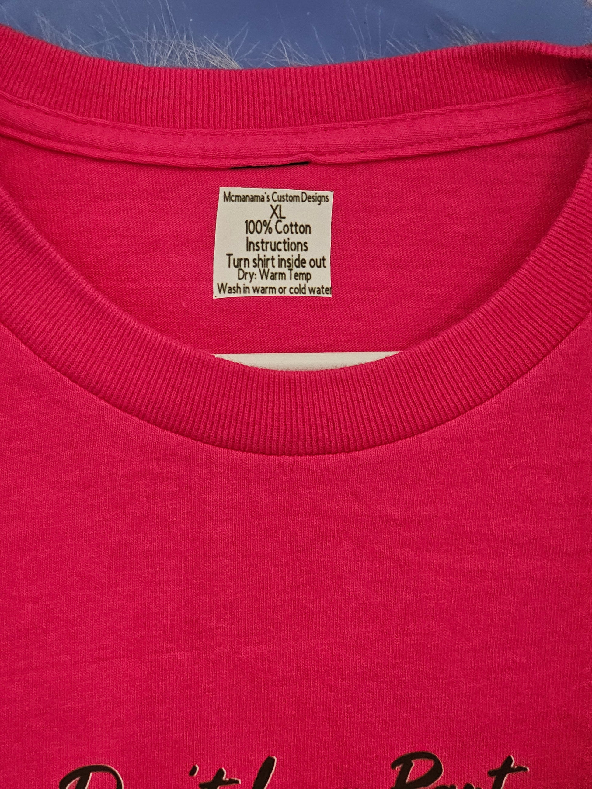 This Size XL 100%cotton Pink Tshirt is designed to make a statement. With a bold "Don't be part of the problem" message, it encourages others to take action. The pure cotton fabric provides comfort and durability, making it perfect for everyday wear. Sizes ranging from XS to XXL are also available.Size XL 100% cotton Pink Don't be part of the problem Tshirt. Washing instructions turn Shirt inside out and wash in cold or warm water and dry on low heat or air dry.Your information is protected.