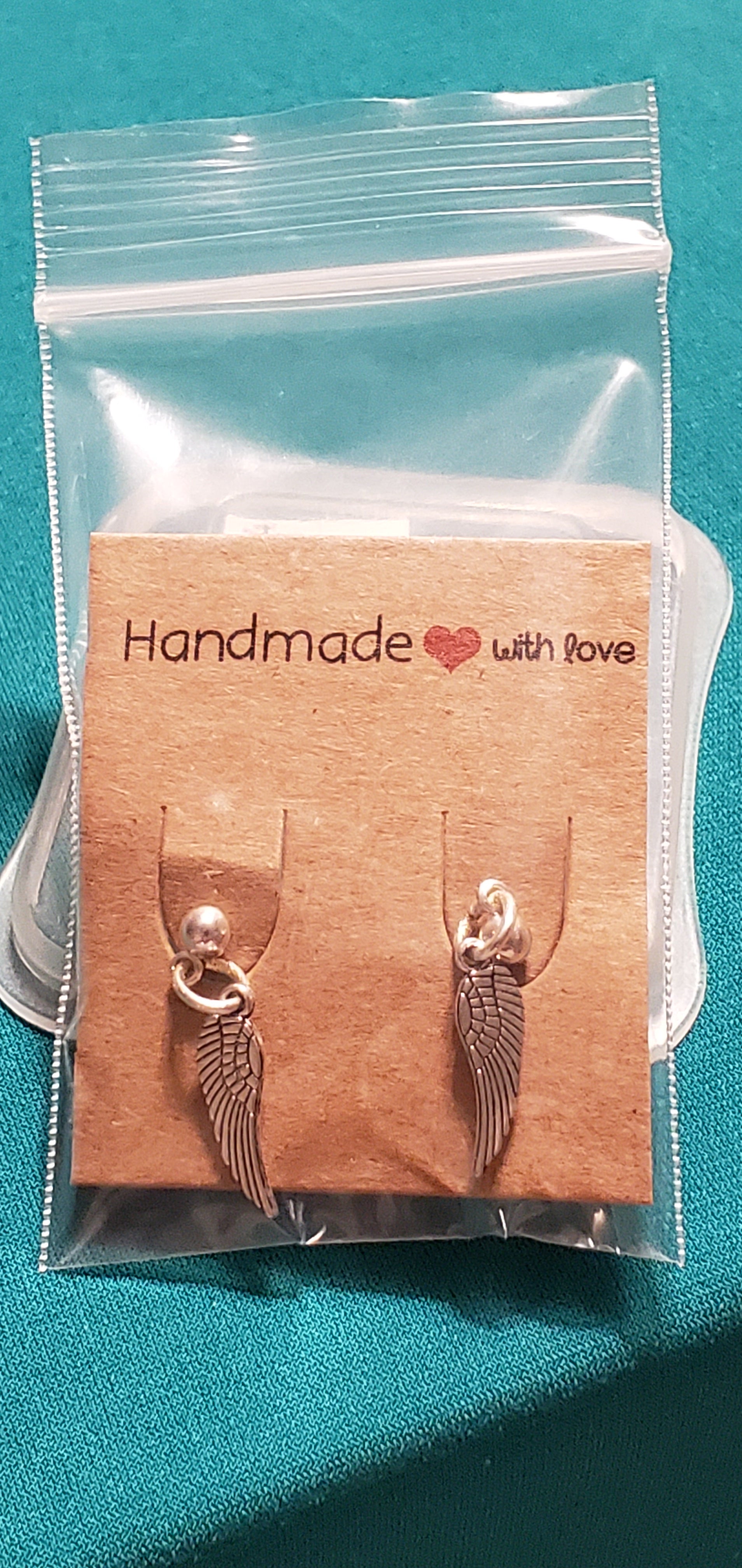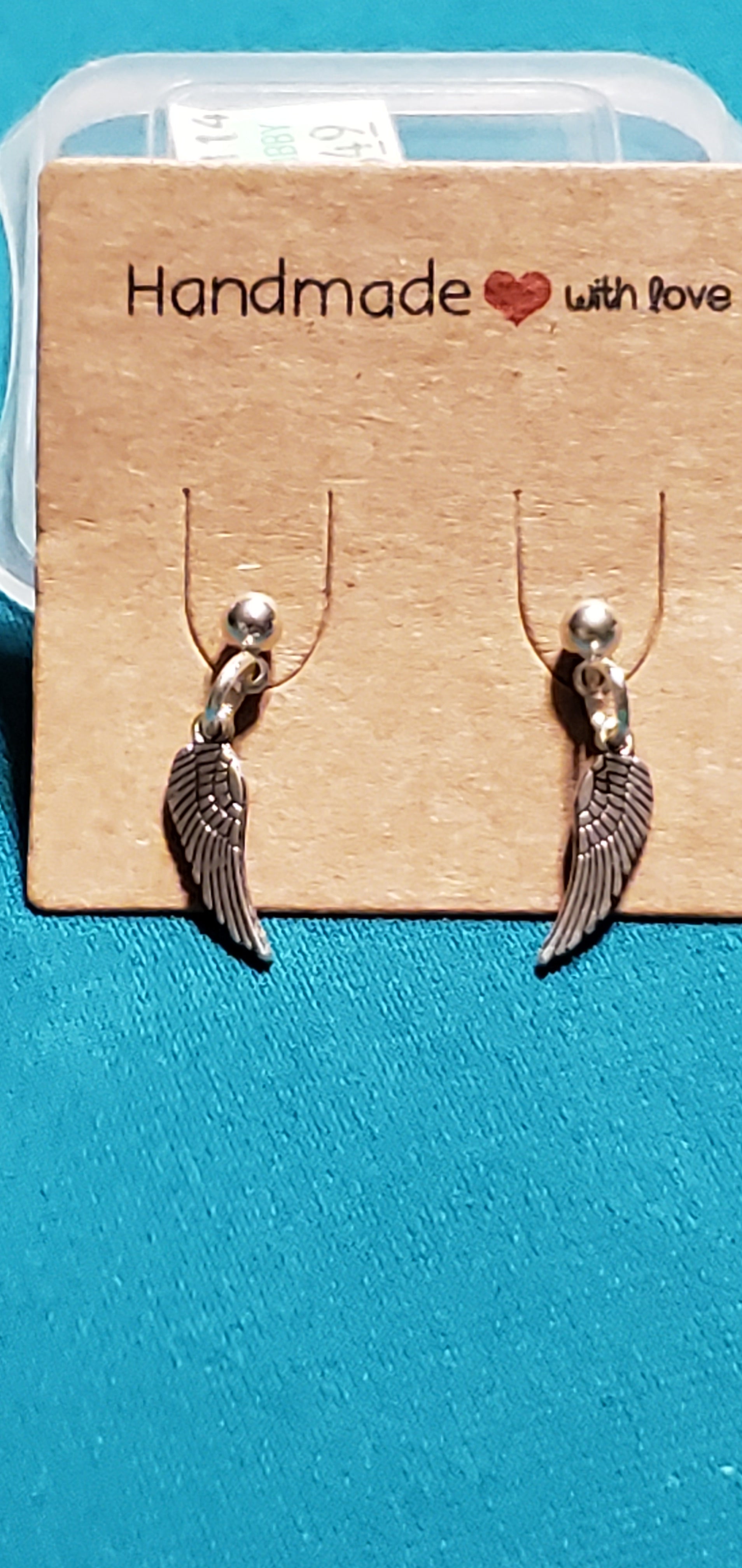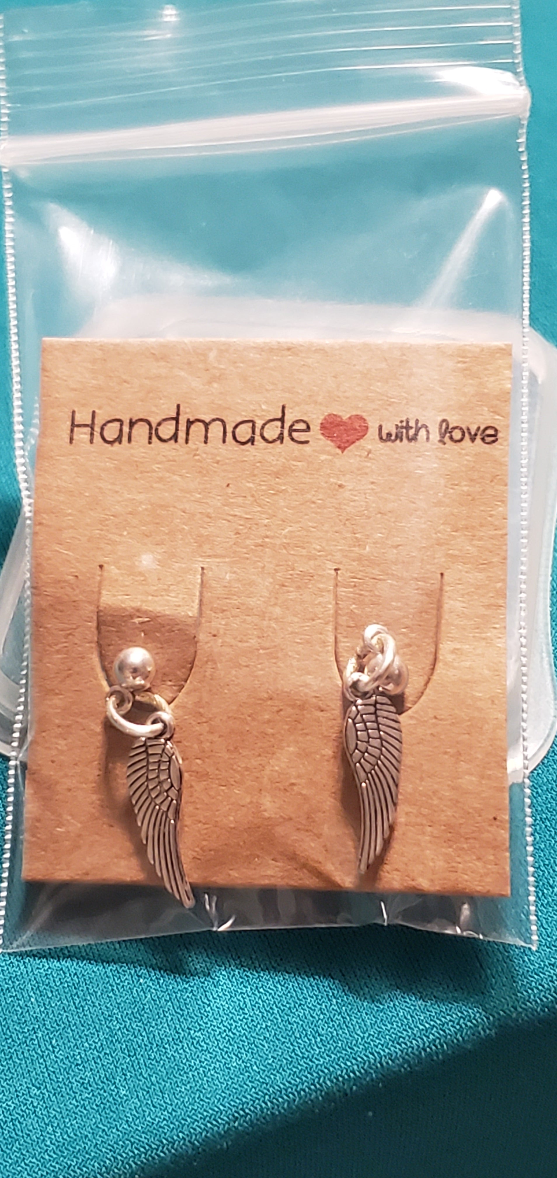 Stainless steel silver plated angel wings post earrings. You can get the earrings for $5.00.