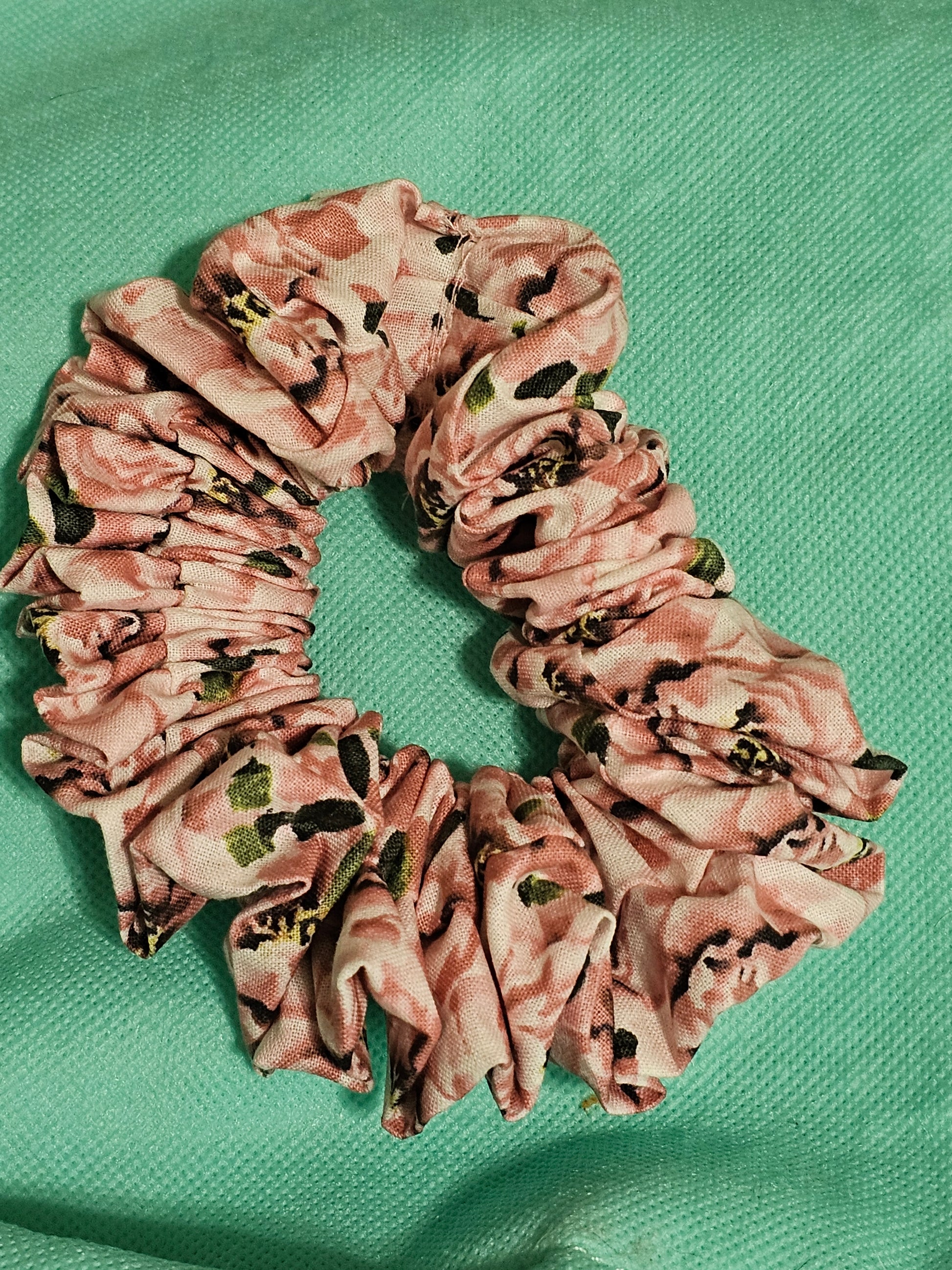 Standard flower scrunche.I double sew them. This standard flower scrunchie adds a pop of color and style to any hairstyle. Made with high-quality materials, it is durable and long-lasting. Its unique flower design allows for versatile styling options and adds a touch of femininity to any look. Upgrade your hair game with this must-have accessory.