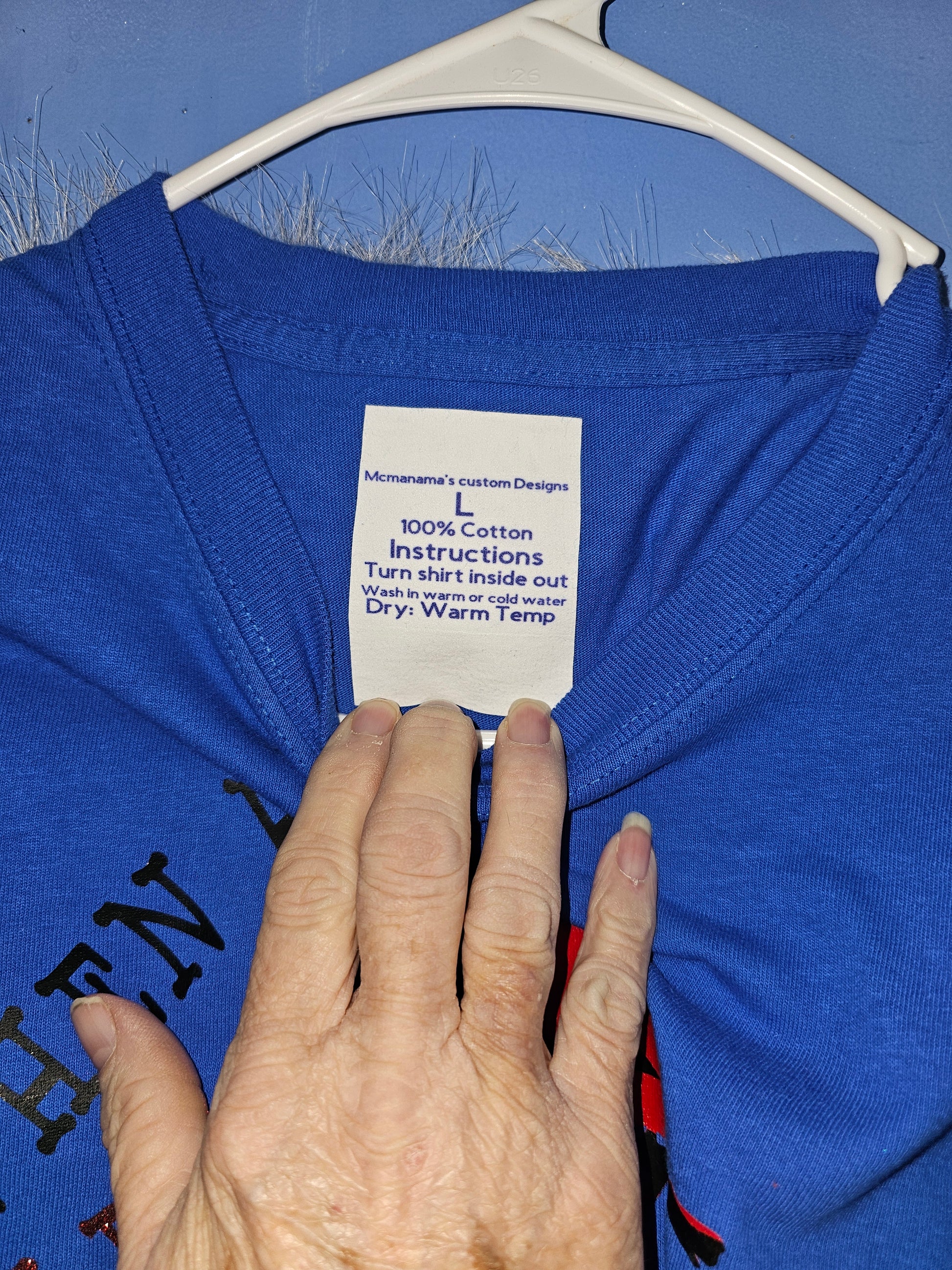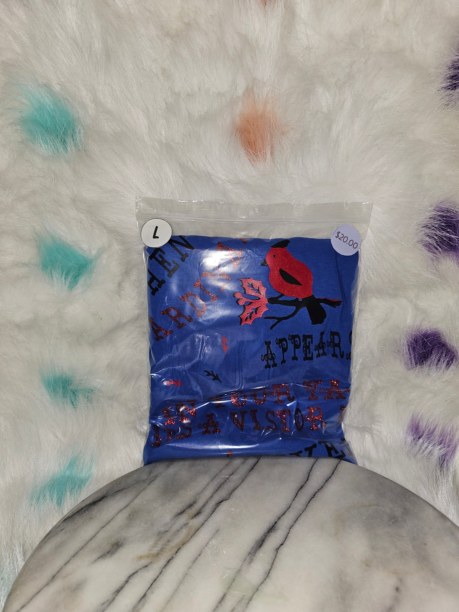 This Size L 100% cotton blue When Angels appear Tshirt is made of high-quality, breathable fabric for maximum comfort. Featuring a beautiful design of a cardinal, this shirt is perfect for any occasion and a great way to show your love for nature. Made with care and precision, this shirt is a must-have for any nature lover.Size 2x Large When a cardinal appears in your yard cotton shirt. I can make different sizes and colors. Washing instructions:Turn Shirt inside out and wash in cold or warm water and dry on low heat or air dry.DO NOT wash in Hot water.Your information is protected.